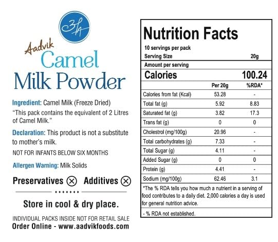 • Pure and Natural Camel Milk Powder from Aadvik Foods- India's first company to brand market and sell Camel Milk and Camel Milk Products.