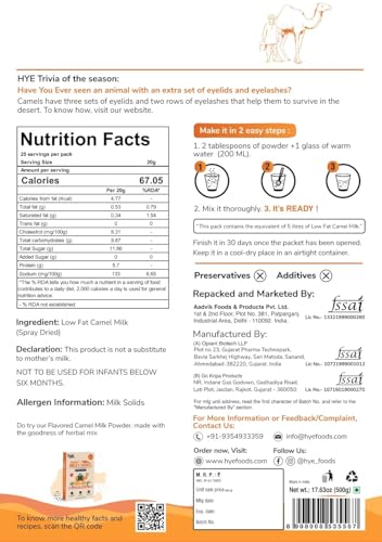 Looking for Low Fat Camel Milk Powder? Well you don't have to look anywhere else because HYE Foods has your back! It is made in ISO-Certified plants. Along with this it does not contain any added sugar! Our Low Fat Camel Milk Powder it contains less than 3% fat which is very lesser than regular Milk! All you have to do is buy Camel Milk! Get your hands on Low Fat Camel Milk by HYE Foods!