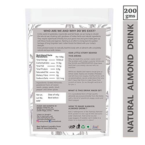 Namhya Natural Almond Drink Powder with Poppy Seeds Melon Seeds and Pistachios