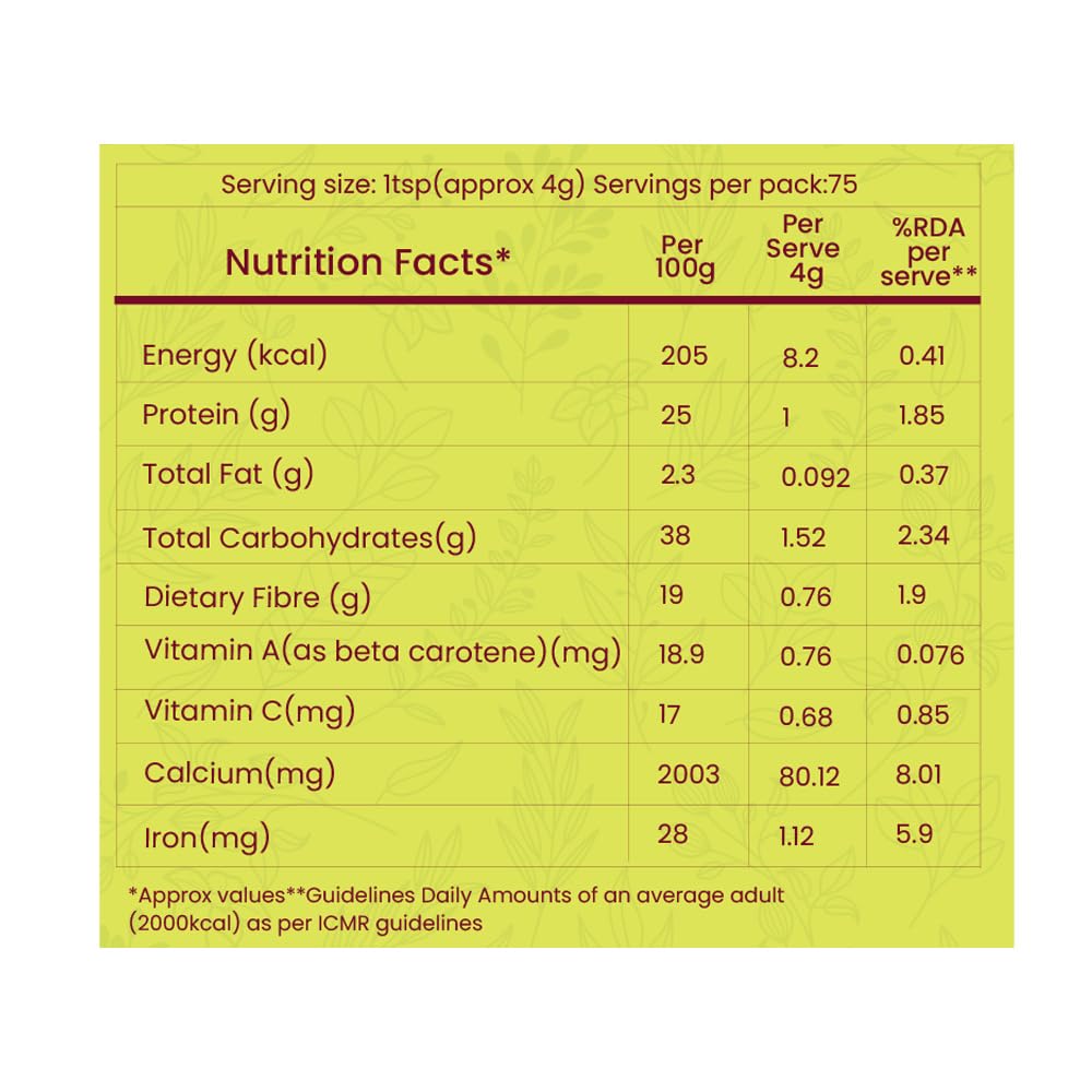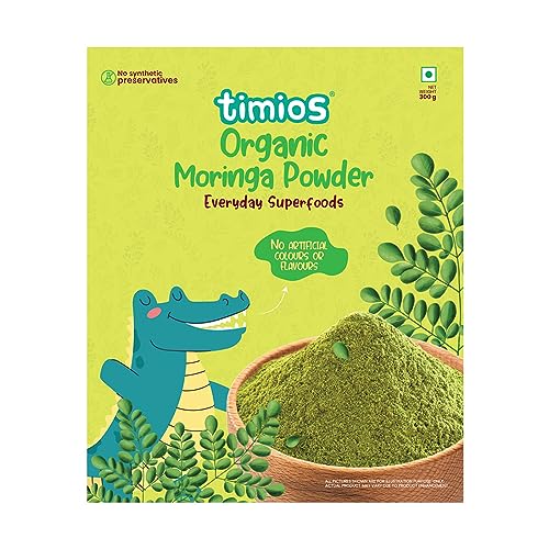 Timios Everyday Superfoods Moringa powder is a complementary food for anyone above 12+ years. Moringa oleifera is a plant that is often called the drumstick tree the miracle tree. Moringa has been used for centuries due to its medicinal properties and health benefits. Timios everyday superfoods Moringa Powder is 100% organic and retains its properties of antifungal antiviral antidepressant and anti-inflammatory properties. Its highest ORAC (Oxygen Radical Absorbance Capacity) supports bone density and proper electrolyte balance. Moringa powder can be used in daily diet for healthy lifestyle. Important note: Not intended to use by pregnant or lactating woman. If on medication consult your doctor before consuming it. Not for medicinal use.