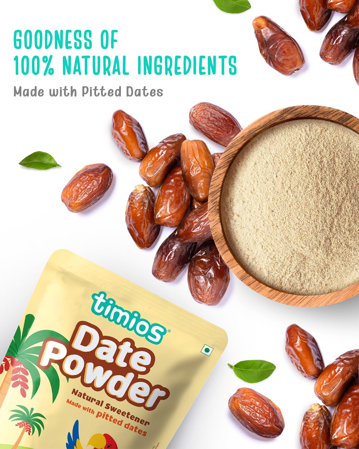• Timios date powder is made with 100% Organic pitted dates & contains no preservative & is free of chemicals.