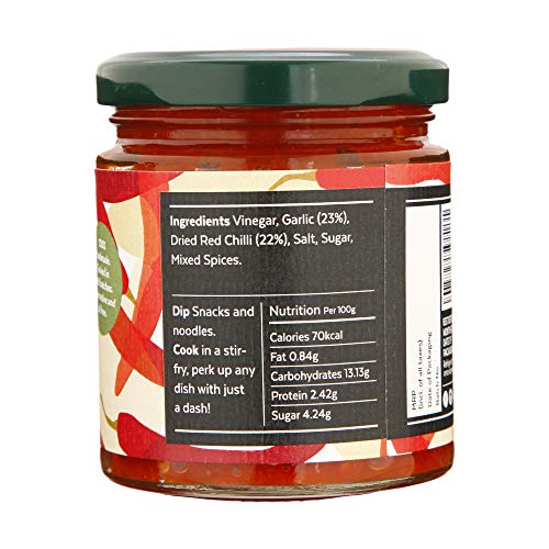 Vinegar Garlic (23%) Dried Red chilli (22%) Salt Sugar Mixed Spices.
