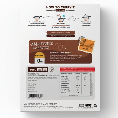HomeGroceryCookingCooking PastesCURRYiT Calcutta Kosha Mangsho Curry Paste 250g | Ready to Cook in 15 mins | Serves 4-6 | Just add Fresh Mutton Meat Fish | Goodness of Ghee | No Preservatives | Eat with Chawal Roti | Indian Masala Gravy
