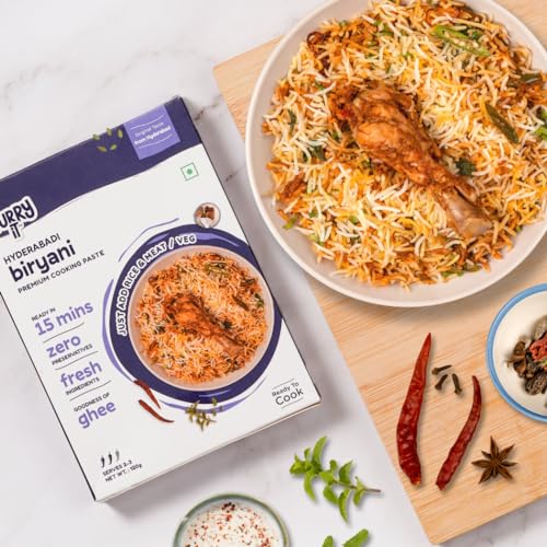 HomeGroceryCookingCooking PastesCURRYiT Instant Hyderabadi Biryani Curry Paste | Just Add Rice & Chicken Mutton Paneer | Ready in 30 Mins | Serves 4-6 | Made with Ghee | No Preservatives | Ready To Cook Indian Masala Gravy | 250g