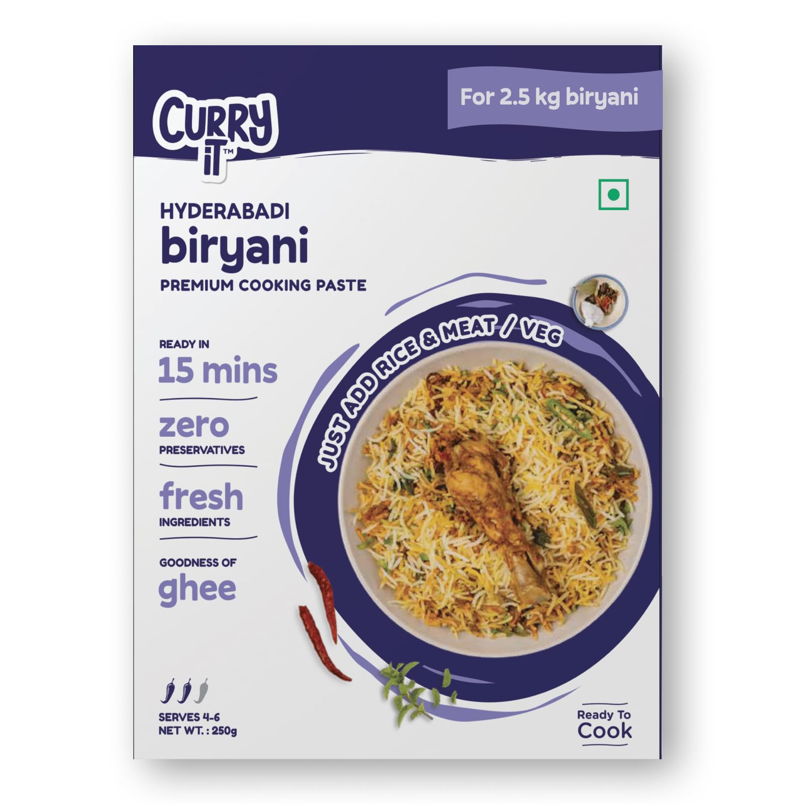 CURRYiT Instant Hyderabadi Biryani Curry Paste | Just Add Rice & Chicken Mutton Paneer | Ready in 30 Mins | Serves 4-6 | Made with Ghee | No Preservatives | Ready To Cook Indian Masala Gravy | 250g