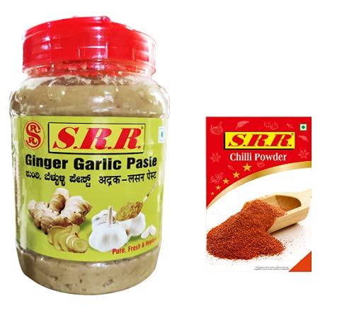 SRR Authentic Ginger Garlic Paste 500 Grams with 12 Gram Chilly Powder Sample Pack Free No Artificial Colors or Flavors