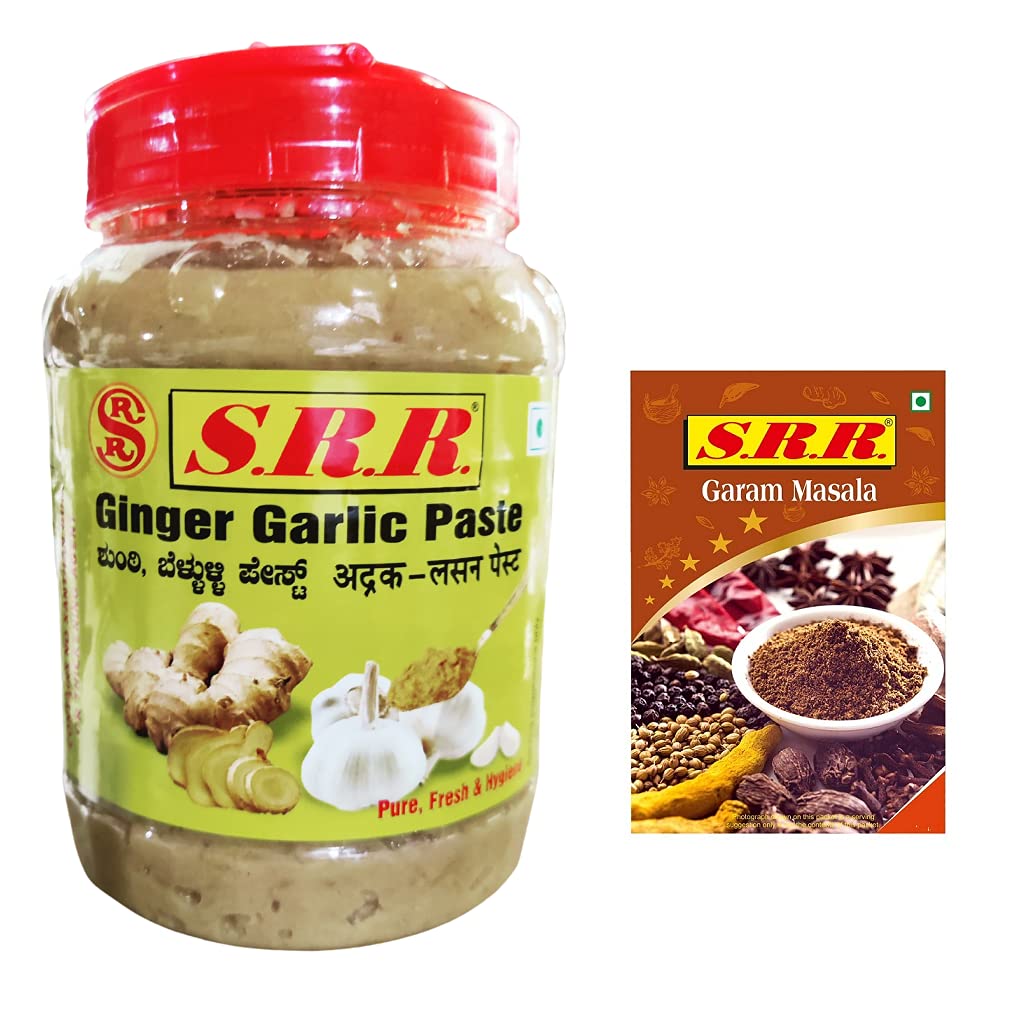 SRR Authentic Ginger Garlic Paste 500 Grams with Garam maslala Sample Pack Free No Artificial Colors or Flavors
