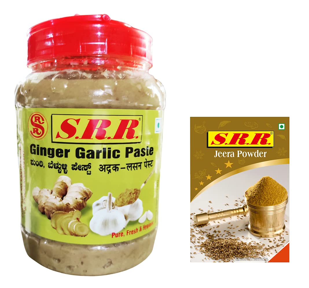 SRR Ginger Garlic Adrak lahsun Paste 500 Grams with Jeera Powder Sample Pack Free No Artificial Colors or Flavors Half kg