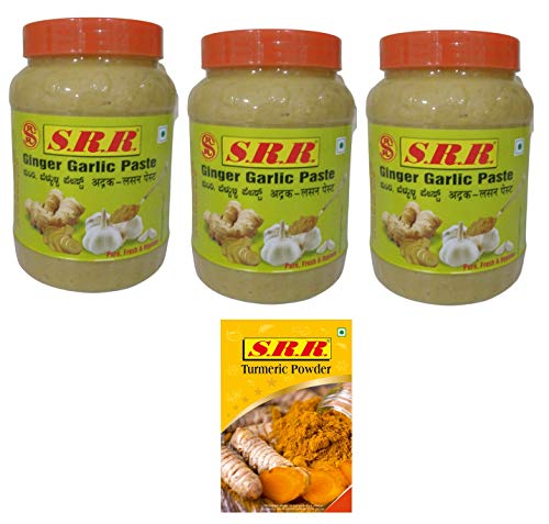 SRR Masala All Natural Ginger Garlic Paste 500g X Pack of 3 with Free 50 Gram Turmeric Powder No Artificial Flavors or Colors