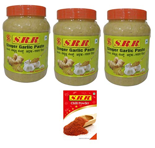 SRR Masala All Natural Ginger Garlic Paste 500g X Pack of 3 with Free Chilli Powder ( 50 Gram ) vNo Artificial Flavors or Colors