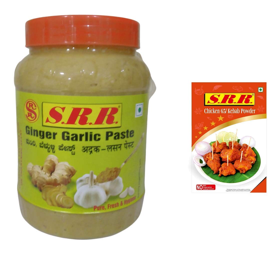 SRR Masala Authentic Premium Ginger Garlic Paste 500 Grams with Free Chicken 65 Kebab Masala 35 Grams - No Added Flavours No Added Colors