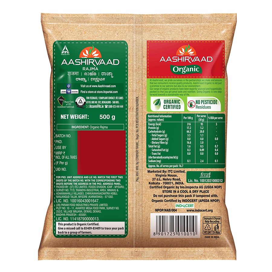 Aashirvaad Organic Rajma 500 grams (Pack of 2)