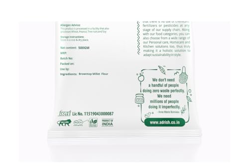 Adrish Zerowaste Organic Browntop Millet Flour - (500gm) - Unpolished Millet Flour | Fiber & Iron Rich | Millet Dosa Flour