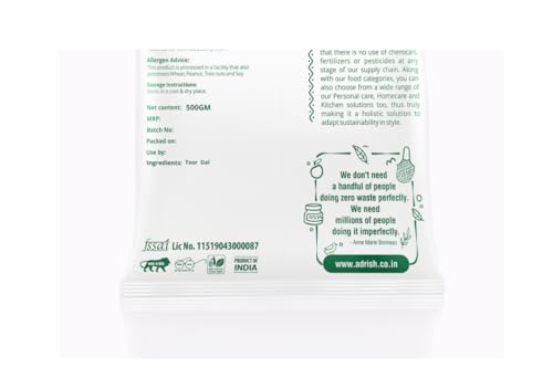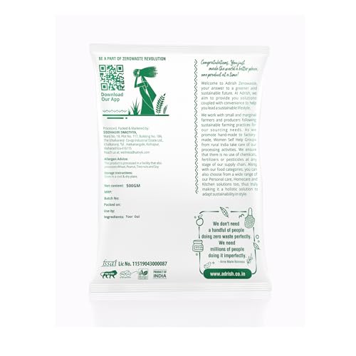 HomeGroceryCookingOrganic Flours, Rice & PulsesAdrish Zerowaste Organic Toor Dal (500gm) - Unpolished | Handpounded Arhar Dal | Protein Rich | Split Pigeon Peas | Rich Source of Plant Protein | With Skin Toor Dal | Ancient Indian Wisdom