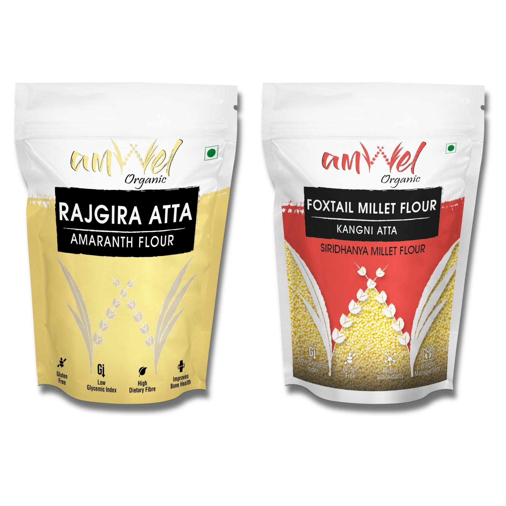 Amaranth flour is a gluten-free flour that is made by grinding the seeds of the amaranth plant into a fine powder.Foxtail millet flour is a nutritious and gluten-free alternative to wheat flour. This flour has several health benefits some of which include: Rich in essential minerals: Amaranth and Foxtail millet flour is a good source of essential minerals like vitamins calcium iron magnesium and potassium. These minerals are important for maintaining healthy bones muscles and red blood cells. Good for digestion: The high fiber content in amaranth flour helps in maintaining healthy digestion by promoting regular bowel movements andietary fiber which has been shown to help lower cholesterol levels and reduce the risk of heart disease.Gluten-free: Amaranth and foxtail millet flour is naturallyd reducing the risk of constipation and reducing inflammation in the gut.Low gi: Foxtail millet and amaranth flour has a low gi which means it does not cause a sudden spike in blood sugar levels. This makes it an ideal food for people with diabetes or those looking to manage their blood sugar levels.Heart health: Amaranth and foxtail millet flour is a good source of gluten-free making it a great option for people with celiac disease or gluten intolerance.Weight management: Foxtail millet and amaranth flour is a low-calorie food that can help with weight management. It can be used as a substitute for wheat flour in many recipes which can help reduce the overall calorie content of the dish.Overall amaranth and foxtail millet flour is a nutritious and versatile flour that can be used in a variety of recipes from bread to pancakes and can provide several health benefits.