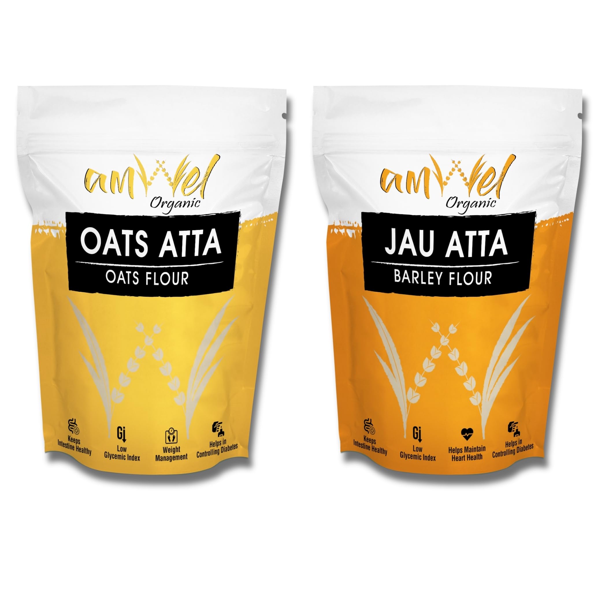 Amwel Combo of Oats Atta 450g + Jau Atta 450g | Oats Flour + Barley Flour | Diabetic Friendly Low GI Fiber Atta for Chapati | Helps Weight Manage | For Good Health | 900g | Vacuum Packed