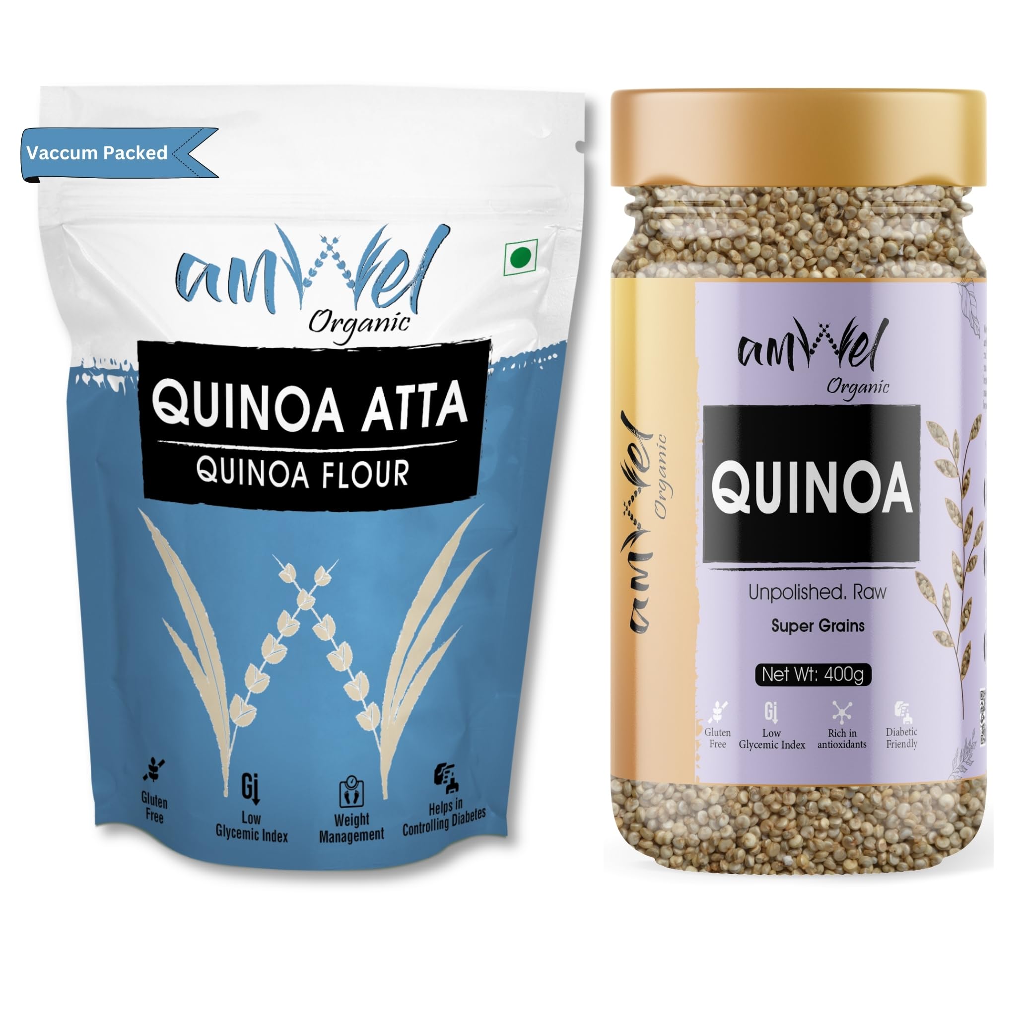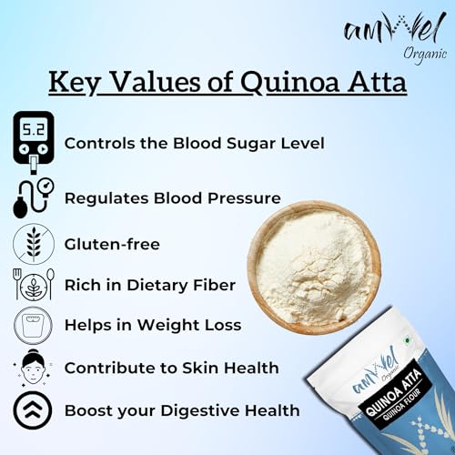 Who says health is Boring?? Give all your recipes a healthy ingredient and replace it with refined flour and see the magic. Eat Healthy!! Stay Healthy!! Get the benefits from the super flours!! Make your english breakfast with traditional Quinoa Atta and make it super healthy!! POWER OF QUINOA : Quinoa is a powerhouse of Protein the best plant-based protein source. Quinoa is packed with all the essential minerals and nutrients required for a healthy body. PROVIDE ANTIOXIDANTS YOUR BODY NEEDS : Quinoa contains flavonoids which have powerful antioxidant & anti-inflammatory effects on the body. it contains essential amino acids that our bodies cannot make on their own. TAKE GOOD CARE OF YOUR GUT HEALTH : Quinoa is high in fiber. Adding more fiber-rich foods into your diet can help support gut health body weight maintenance and improves digestion. ADOPT GLUTEN FREE LIFESTYLE : Quinoa is gluten free in nature and hence it can be consumed by those allergic to gluten (wheat) or are adopting gluten-free lifestyle. MAKE MULTI-CUISINE RECIPES: Quinoa not only is a protein powerhouse but also absorbs so many different flavors and adds a unique texture to our favorite dishes like quinoa tacos quinoa salad & more We at amwel aim to help you have a healthy and wholesome lifestyle by presenting our range of healthy staple foods. Each product nurtures an old age secret of good health and better immunity. Let these superfoods of nature restore its magical and healing balance book into your bodies. DIRECT FROM MANUFACTURER : We ship freshly manufactured traditionally stone grounded Quinoa Atta making sure that all the essential nutrients remain intact. ADD TO CART NOW