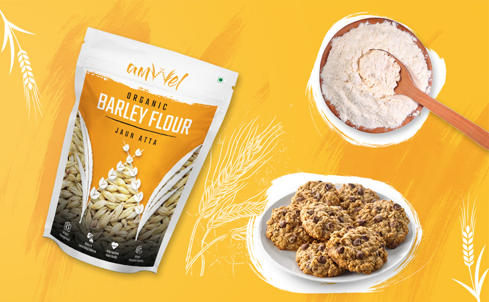 HomeGroceryCookingOrganic Flours, Rice & PulsesAmwel Organic Jau Atta - Barley Flour Jaun ka atta | 450g x 4 pc | Rich in Dietary Fiber Good for Digestion Weight Loss Gut health | Natural & Vegan | Diabetic friendly Low GI | Without Wheat | Vacuum Packed
