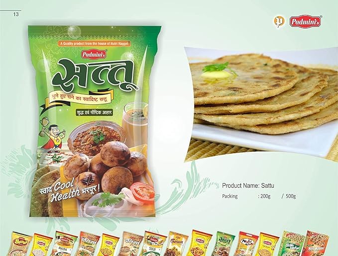 Padmini-sattu atta will help prepare a wholesome and nutritious meal that will excite your taste buds. The product is derived from sattu a mixture of ground pulses and cereals. Sattu atta can be mixed with whole wheat flour to produce a variety of nutritious food items. It can also be mixed with sugar nuts jaggery etc. To make tasty snacks. The sattu atta from has high protein rich content that helps maintain the vigour and vitality of the body. It also contains zero cholesterol ensuring you remain at your healthy best. Sattu atta is rich in minerals that play an important role in maintaining a healthy body. The atta also has a low glycemic index keeping blood sugar under control.