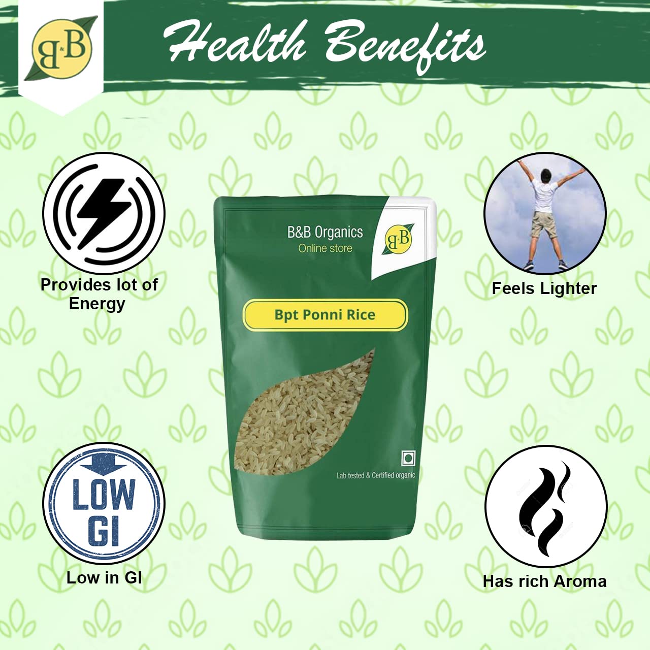 B&B Organics procure their products from certified farmers B&B Organics periodically lab test their organic products to maintain its quality and to prevent contamination. BPT Ponni is also rich in proteins so vegans should eat it for their protein strength.