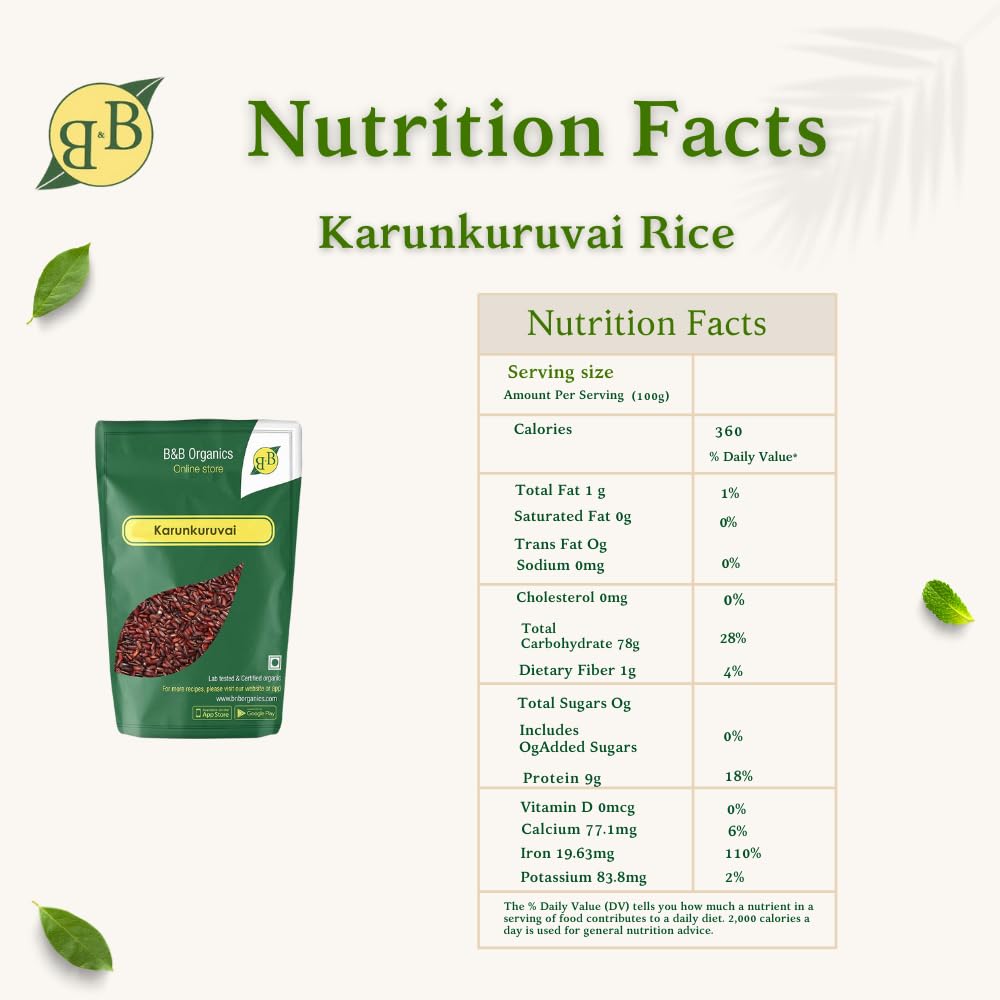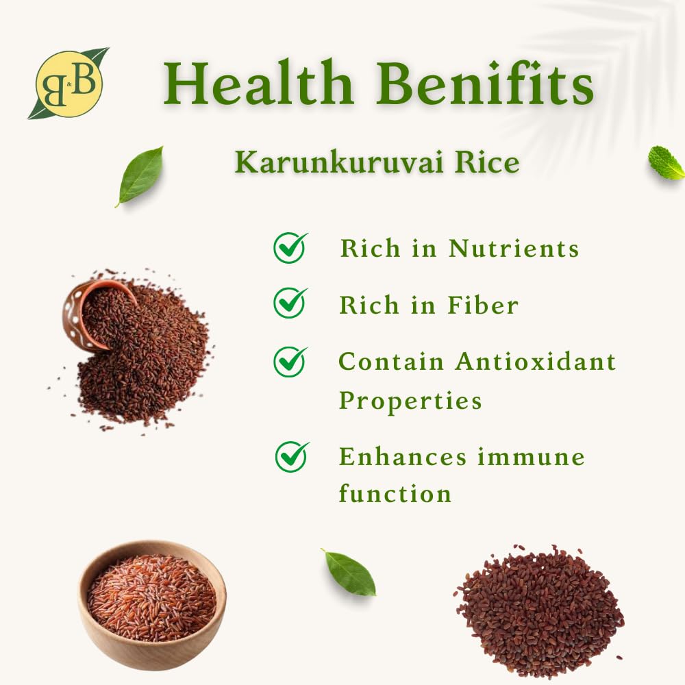 B&B Organics Hand- Pounded Karunkuruvai Rice (500g)/ Traditional Red Rice/Karunkuruvai arisi