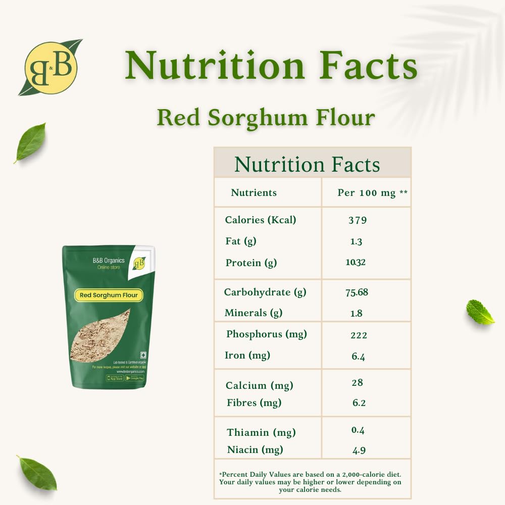 • NUTRIENTS : Red sorghum flour is a powerhouse of nutrients such as proteins fibre Vitamin B1 Vitamin B5 Vitamin B6 iron phosphorus and zinc.