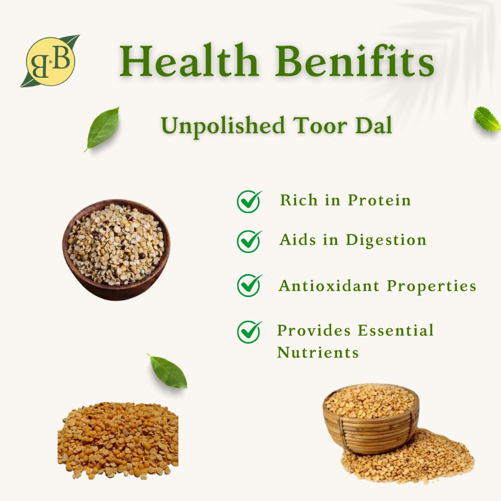 B&B Organics Unpolished Toor Dal (250g)/Traditional Dal/Thuvaram Paruppu/Handpounded Dhal