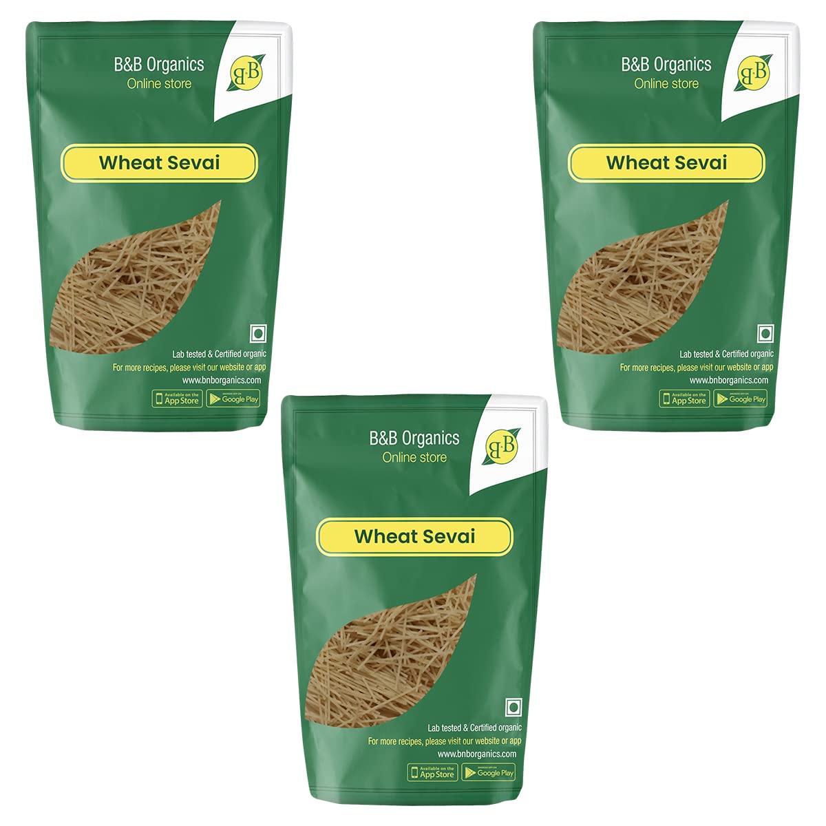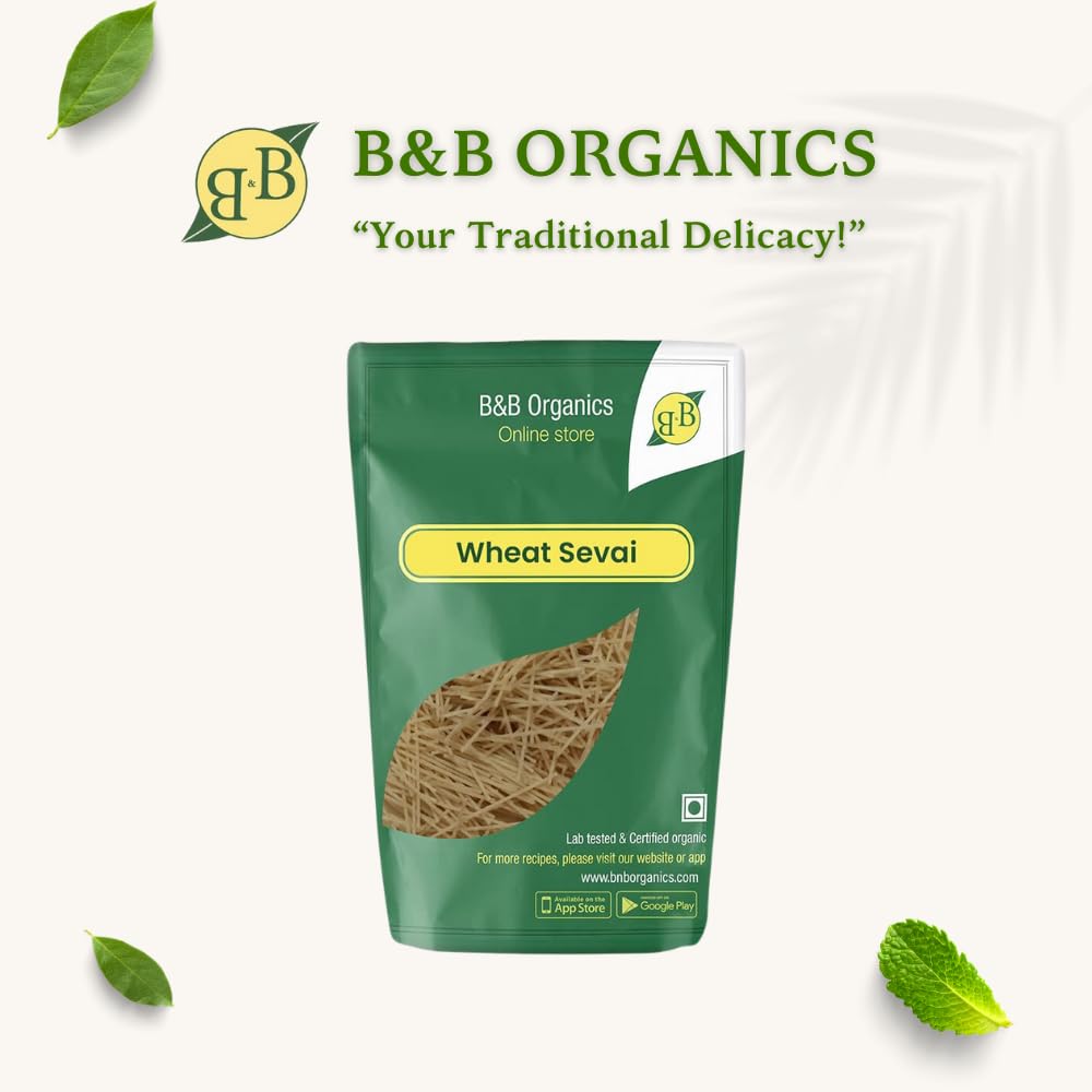 B&B Organics Wheat Vermicelli (180g Pack of 3)/ Wheat Sevai/Natural and Preservative Free/Zero Additives