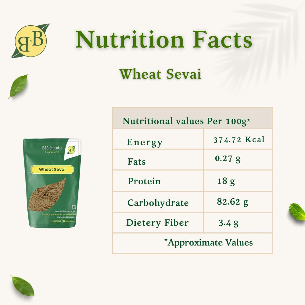 • NUTRIENT RICH: Wheat sevai contains many essential nutrients like vitamin B niacin folate iron zinc phosphorus etc that support good health.