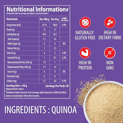 • High in Fibre: Bagrrys Quinoa is high in fibre which aids digestion promotes a feeling of fullness and supports regular bowel movements. Additionally it is low in glycemic index which helps in stabilizing blood sugar levels and regulating insulin levels.