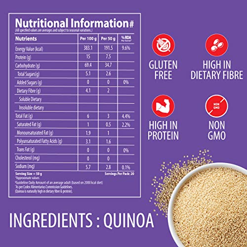 High in Fibre: Bagrrys Quinoa is high in fibre which aids digestion promotes a feeling of fullness and supports regular bowel movements. Additionally it is low in glycemic index which helps in stabilizing blood sugar levels and regulating insulin levels.