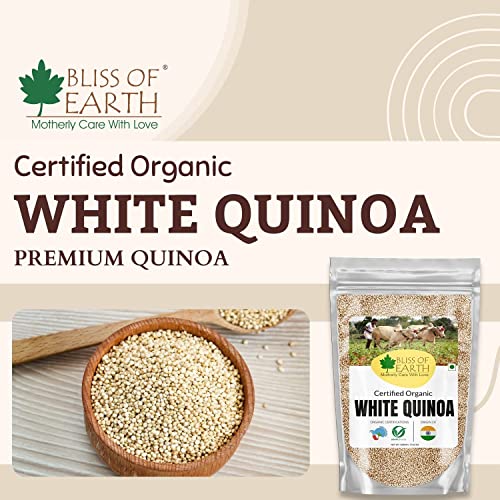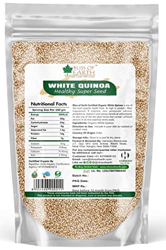 Bliss of Earth Certified Organic White Quinoa is one of the most popular healthfood. Its jigh in protein fiber magnesium B vitamins iron potassium calcium phosphorus vitamin E and various beneficial antioxidants. Its also one of the few plant foods that contain sufficient amount of all nine essential amino acids.