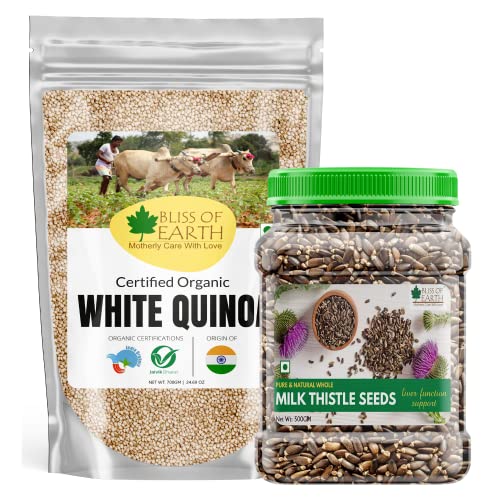 Bliss of Earth Combo Of Naturally Organic White Quinoa (700gm) For Eating And Milk Thistle Seeds (500gm) Super Food For Liver Cleansing, Immunity Boosting And Blood Sugar Control (Pack Of 2)