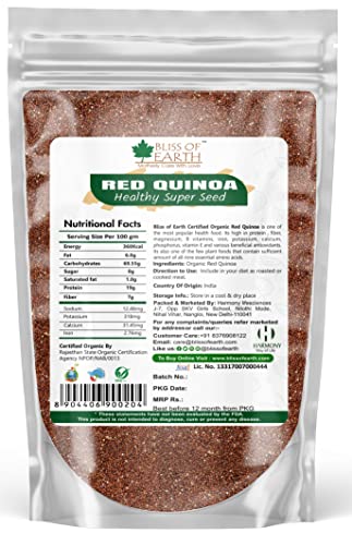 Bliss of Earth Certified Organic Red Quinoa is one of the most popular health food. Its high in protein fiber magnesium B vitamins iron potassium calcium phosphorus vitamin E and various beneficial antioxidants. Its also one of the few plant foods that contain sufficient amount of all nine essential amino acids.