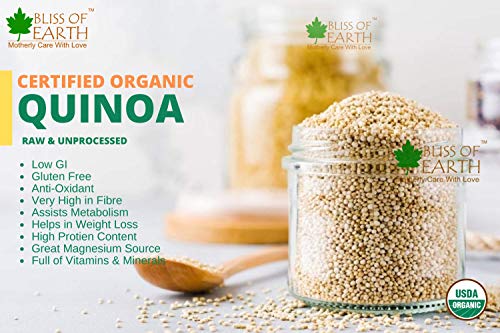 Bliss of Earth Certified Organic White Quinoa is one of the most popular healthfood. Its jigh in protein fiber magnesium B vitamins iron potassium calcium phosphorus vitamin E and various beneficial antioxidants. Its also one of the few plant foods that contain sufficient amount of all nine essential amino acids.