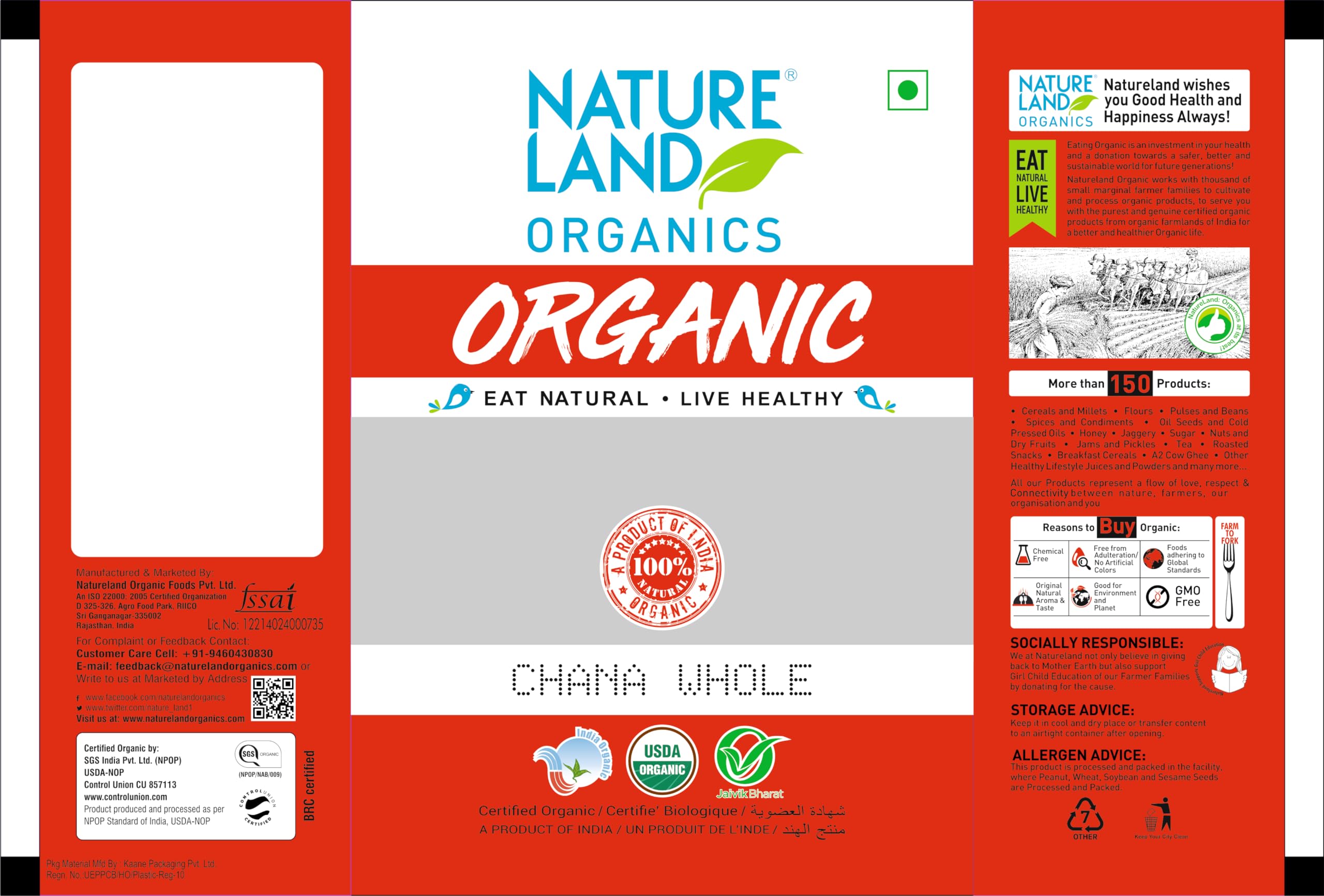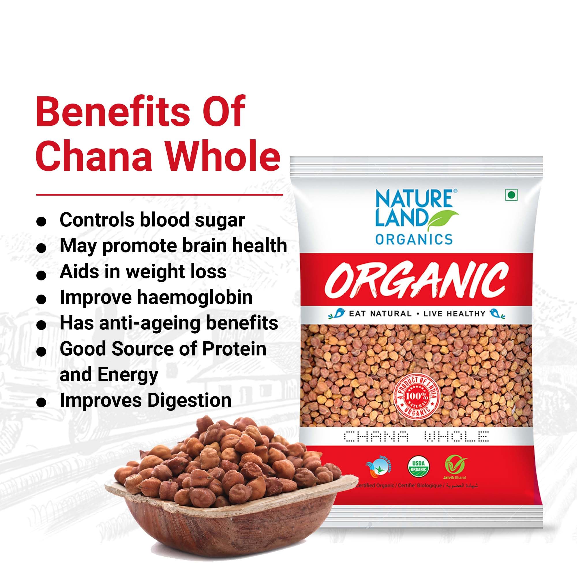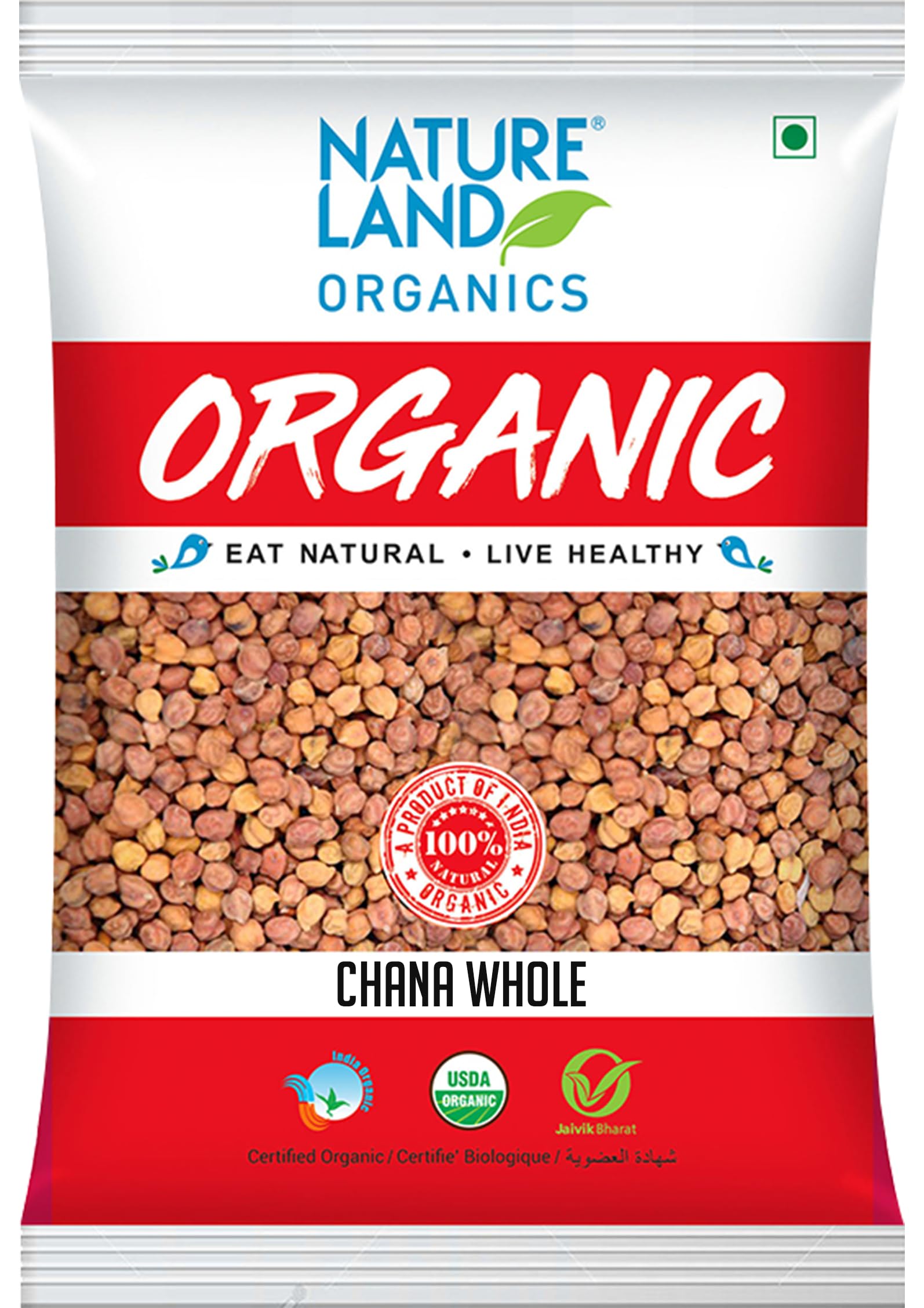Kala chana/chana whole are considered both protein and vegetable because they are a rich source of vitamins and minerals present in both food groups. Its seeds are high in protein. Natureland Organic chana whole is sourced from north and central India which is medium in size having very pleasing moderate aroma and great taste. This chana whole is sorted and machine cleaned as well as handpicked before packing to ensure its quality purity and hygiene.