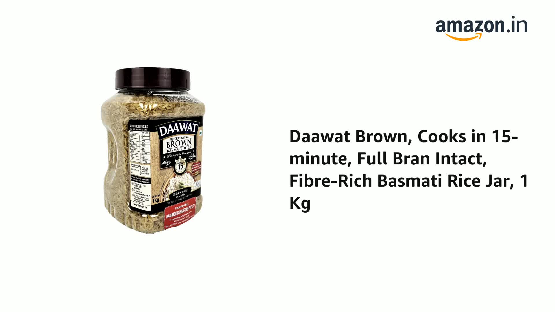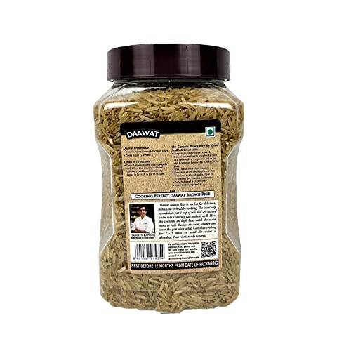Daawat Brown Cooks in 15-minute Full Bran Intact Fibre-Rich Basmati Rice Jar 1 Kg