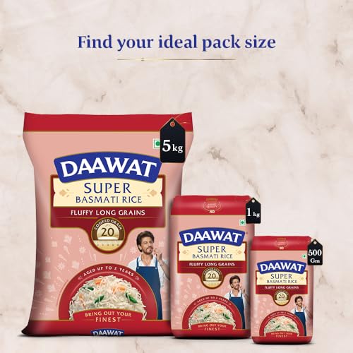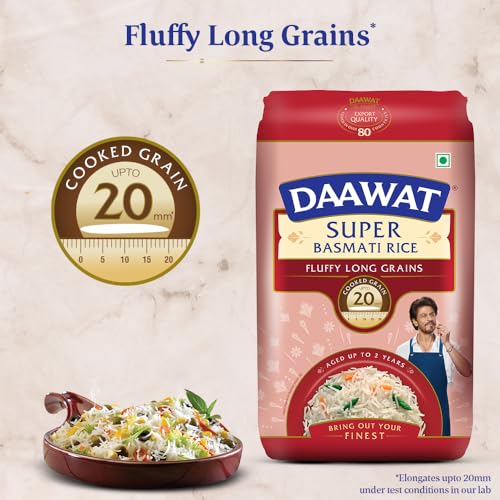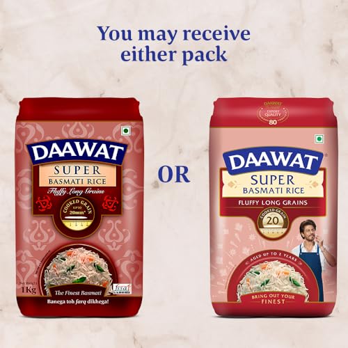 Daawat Super Basmati Rice 1Kg +100g or 1Kg| Fluffy Long Grains| Cooked upto 20mm*