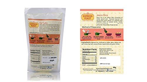 Package Contents: 80 g of Jeera Rice (Pack of 2) 80 g of Dal Tadka (Pack of 1)