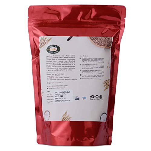 Millet Amma Organic Khapli Wheat Flour Organic - 1 Kg (500g x 2 Packs) | Rich in Iron & Zinc | Helps in curing Anaemia | 100% Vegan & Diabetic Friendly | No Preservatives