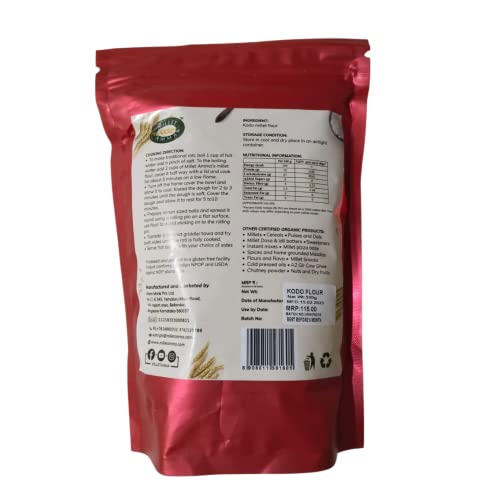Millet Amma CERTIFIED ORGANIC Kodo Flour - 1 Kg (500g x 2 Packs) | Milled from Unpolished Kodo Millets | Rich in Fiber, B Complex , Vitamins & Essential Amino Acids | Low GI | 100% Vegan & Gluten Free | Suitable for Making Multiple Recipes ( Rotis, Pancak