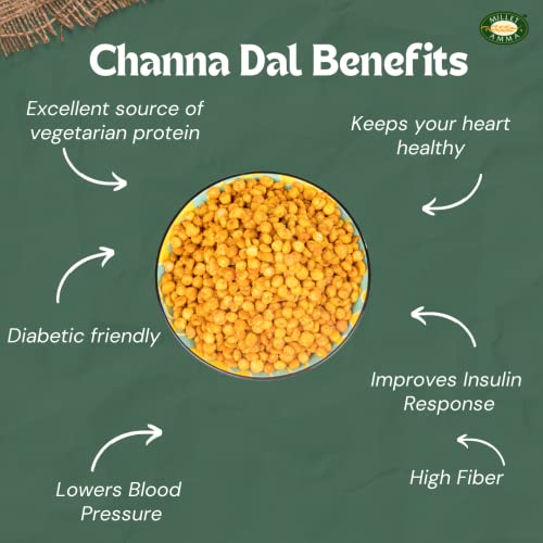 The Milletamma's chana dal is an excellent source for plant-based protein. It provides high fiber content at low cost so illness. It to lower . Storage: Store your favourite Milletamma's chana dal at a cool and dry place for 3 months. Chana Dal is also known as Bengal Gram has a nice crunchy and nutty flavour. When grounded it is known as Besan. Both chana dal as well as the besan is used as a major ingredient for many delicacies. Chana dal is being cultivated in India for a long time however it is believed that it originated from the Eastern Mediterranean region. Many of us are already aware of the benefits of consuming the whole chana but today we will introduce you to some lesser-known yet amazing benefits of chana dal. Chana dal is believed to be a rich source of Folic acid which helps prevent defects of the child's brain and sal cord. Folic acid also helps improve the red cells count in the body which is quite important for the development of the child. Chana dal is a rich source of zinc. Zinc is needed by the body to treat night blindness. Zinc helps activate certain enzymes in the body that helps in the production of vitamin A which is considered to be good for the eyes. Chana dal is high in fiber content. Fibers are need by the body to maintain the health. These fibers also help in reducing the level and maintaining the health.