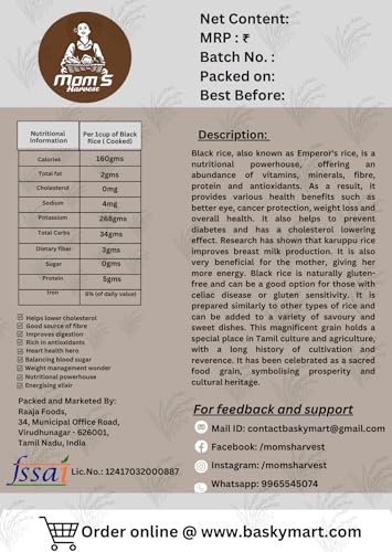 MOM'S HARVEST Karuppu Kavuni Rice ( 900 grams )Traditional Black Rice | Forbidden Rice Unpolished | Traditional Kavuni Rice