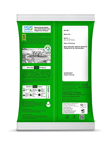 Nature land organic foods moong whole is greener medium sized and had a great traditional taste since organically grown using traditional seeds and processed traditionally. It is machine cleaned and handpicked before packing to ensure its purity and hygiene which is healthier tastier and have high nutritional value easy to digest and easy to cook.