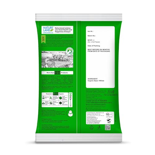Bajra is rich in insoluble fibre that aids digestion. It also reduces secretion of bile acids and is linked to a lowered risk of gallstone formation. Natureland Organic foods bajra flour is processed from selected grains of best quality processed and cleaned free from chaff broken immature and foreign matters wholesome and uniform in size and color free from obnoxious smell discoloration immature shriveled and all other impurities.