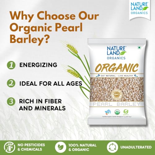 Organic Pearl barley is dehusked and eatable form of barley grain which is good source of dietary fiber manganese and magnesium.