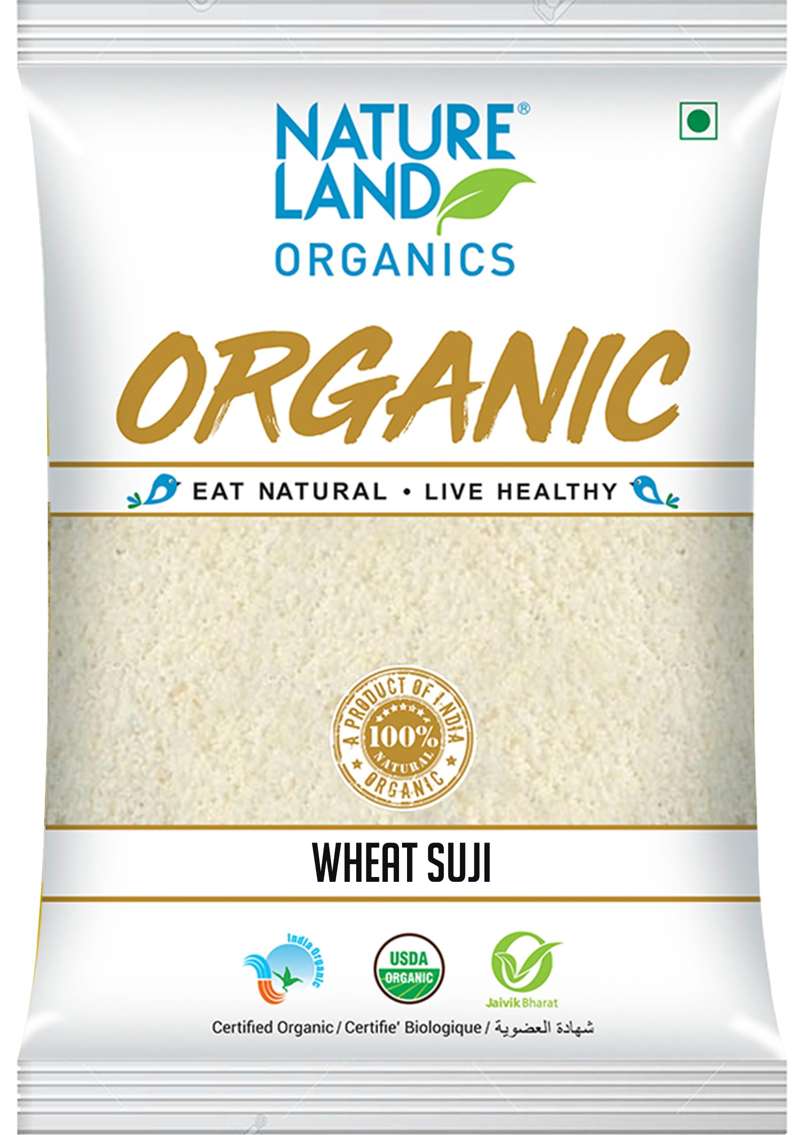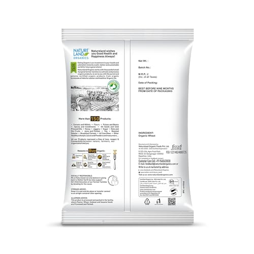 Wheat sooji or semolina has low glycemic index and that makes it a recommended food for diabetics. Natureland Organic foods suji is real cream of wheat soft suji made from premium grade of selected wheat grains by processing in a way so that only the core of wheat is pounded to make rawa/suji. This suji is packed with vital nutrients fiber and manganese and has unparallel taste and flavor. Maximum Shelf Life: 6 Months