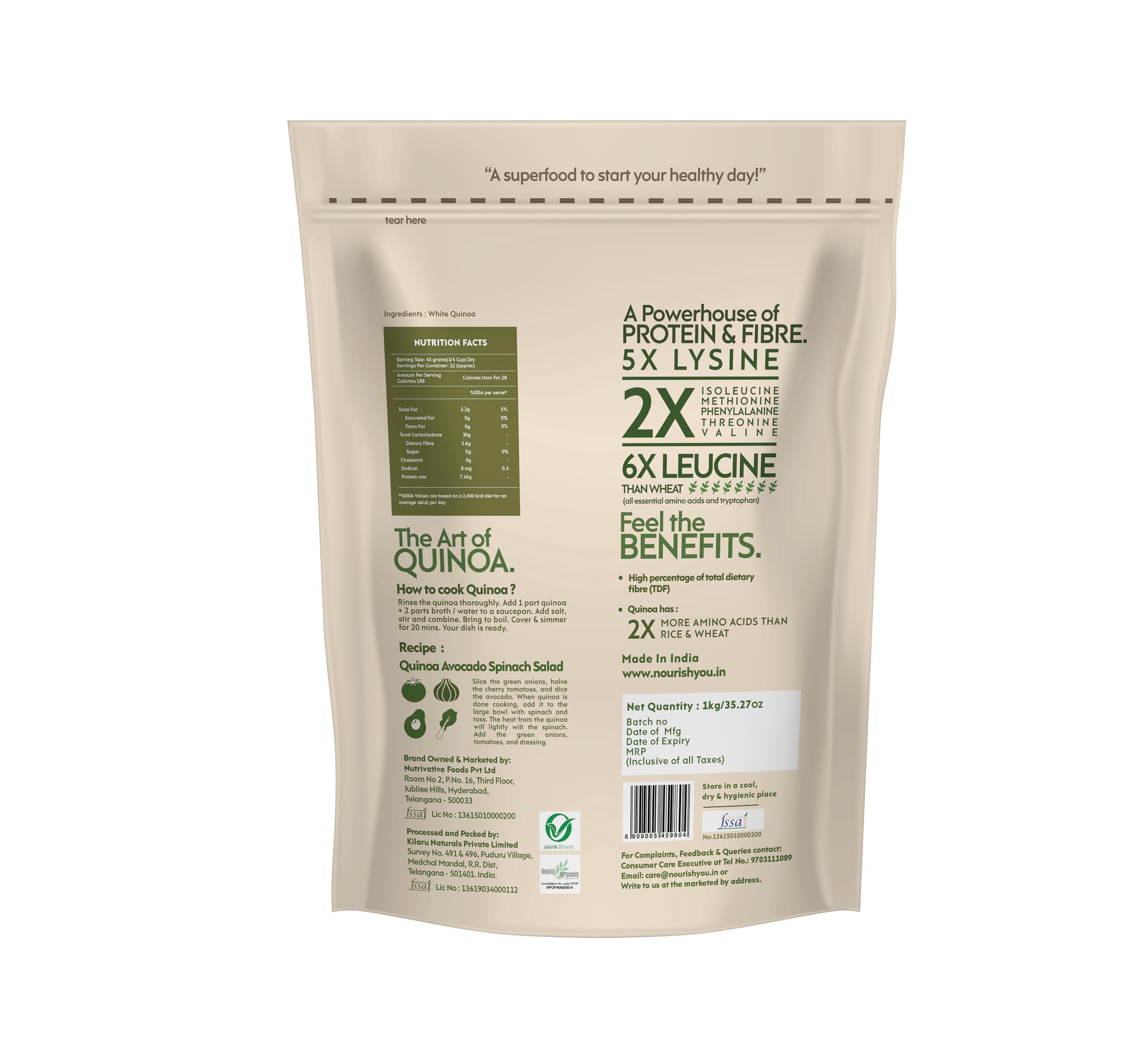 Nourish You Organic White Quinoa Seeds 1Kg | Healthy Food | Gluten-Free | Saponin Free | High Protein & Fiber | Diet Food | USDA Certified Grain | 100% Wholegrain Cereal