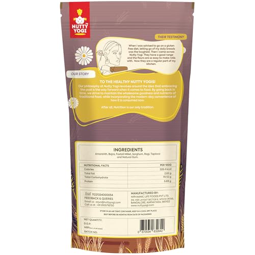 HomeGroceryCookingOrganic Flours, Rice & PulsesNutty Yogi 5 Multi Millet Flour l Gluten Free l Grain-Free l Amaranth Bajra Foxtail Millet Sorghum Ragi l Diet Food For Weight Loss l Mix in Atta to make it Multigrain atta 400gm