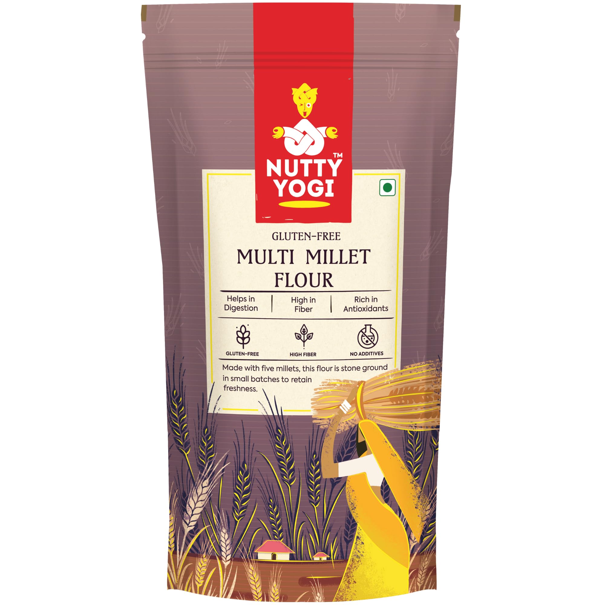 Nutty Yogi 5 Multi Millet Flour l Gluten Free l Grain-Free l Amaranth Bajra Foxtail Millet Sorghum Ragi l Diet Food For Weight Loss l Mix in Atta to make it Multigrain atta 400gm